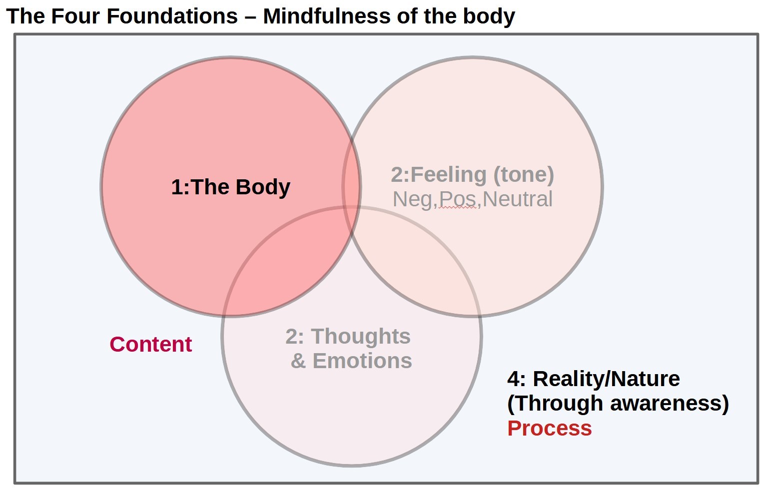 5. The body experiences by feeling, so by becoming familiar with patterns of physical sensation, we can more easily work with them. If our body is in pain and we try to ignore it, resist it, or ruminate on it, we’re trying to live outside physicality. This is a recipe for fractured living. Mindfulness of body invokes a peace that doesn’t depend on things being pleasant.