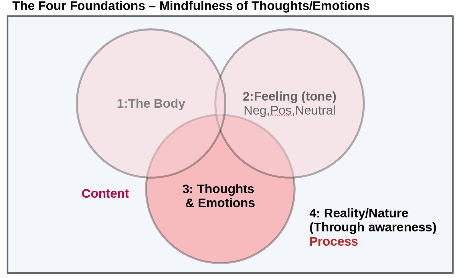 Note on Feelings: You can see that emotions are more complex than the basic three feeling tones described in the Mindfulness of Vedana Foundation. Thinking, emotions and actions flow from our first split second reaction to something. It is at that point when we have a chance to alter our behaviour.