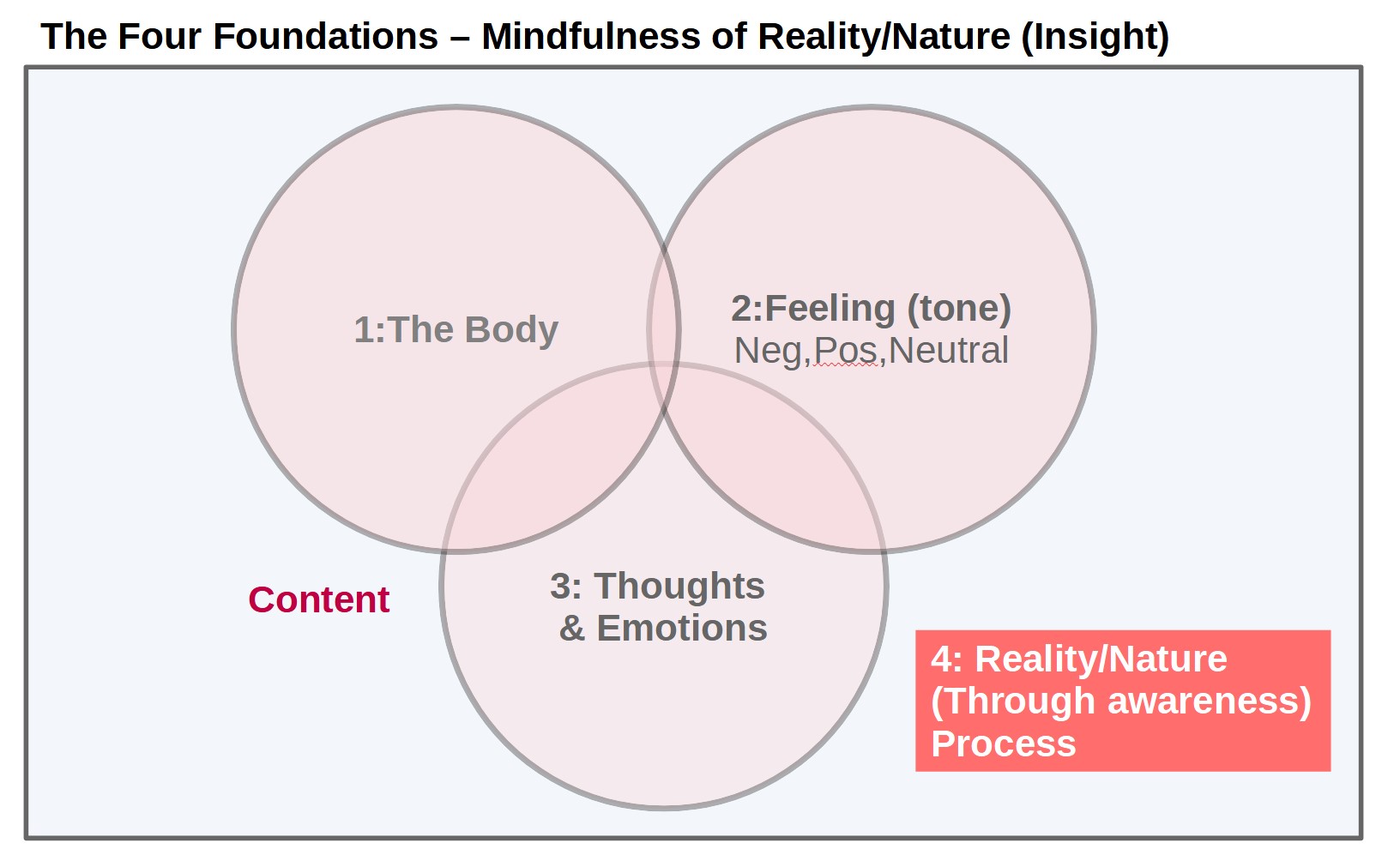 So from a Buddhist perspective the fourth foundation is about developing a personal understanding and knowledge of the “reality” of nature. Through an understanding practice of the teachings. This is often referred to as “insight”. It comes about through personal investigation of the experience of living.